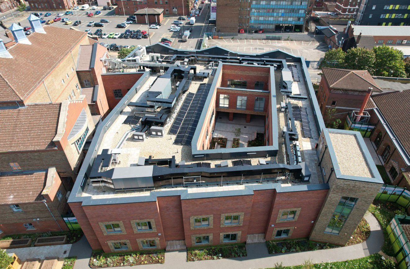 RLW Roofing was appointed by Vinci Construction to deliver the roofing package for the Edward Street Hospital project in West Bromwich. This healthcare development required robust, high-performance roofing solutions alongside high-quality finishes. The project formed part of improvements to the hospital estate, with RLW responsible for the installation of a hotmelt roofing system and associated external works. Our scope included waterproofing, edge detailing, parapet systems, and bespoke fabricated features, all delivered to the exacting standards required within the healthcare sector.